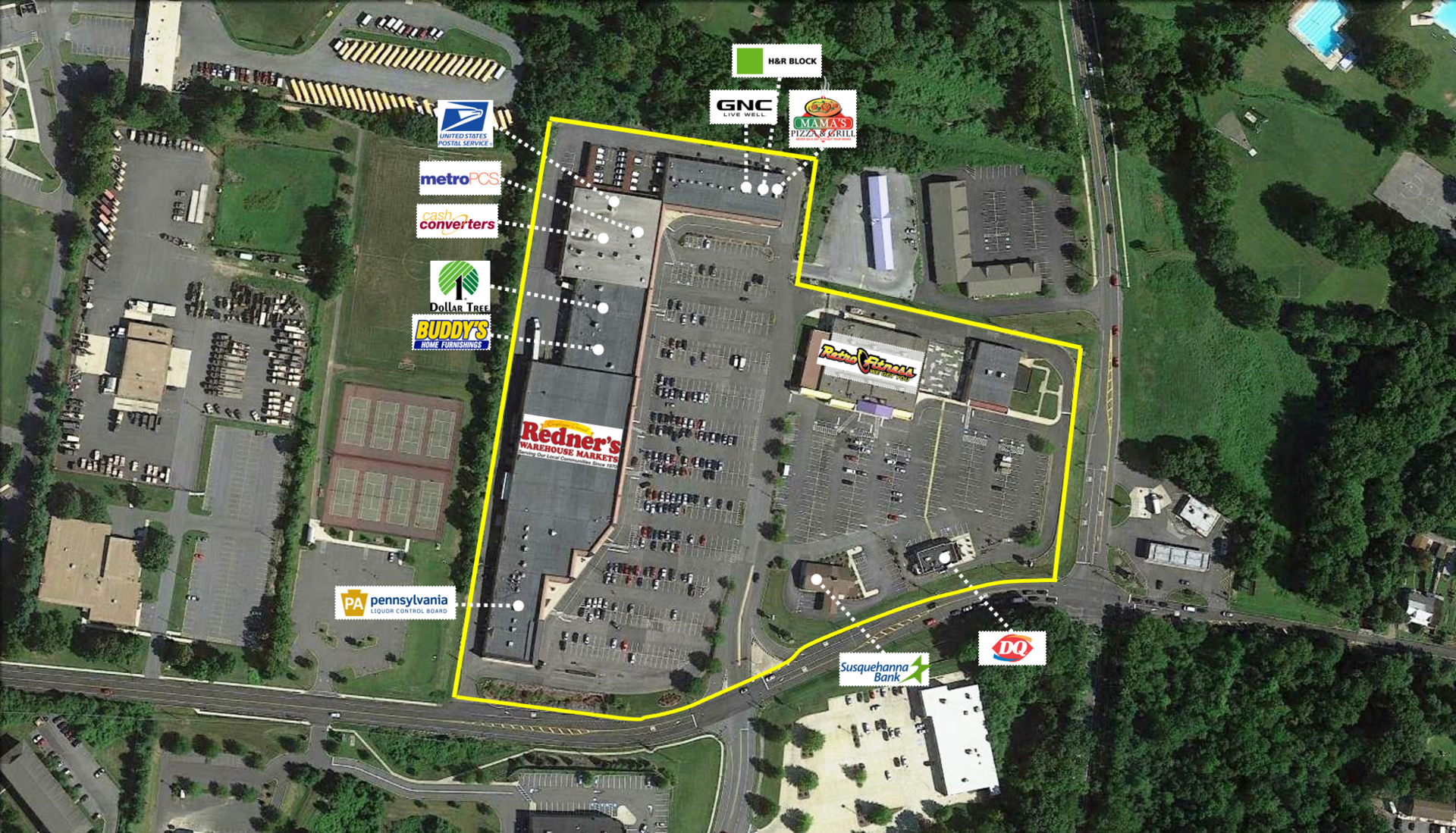 Kenhorst Plaza is a grocery anchored community shopping center in Kenhorst, PA. Strong sales from Redner’s supports retailers, including Dollar Tree, Retro Fitness, Hounds Town, and Dairy Queen. This 161,242 square foot shopping center is situated with excellent visibility at the corner of Philadelphia Avenue and New Holland Road with daily traffic counts of 15,000 and 8,000, respectively. The center, which has ample parking, benefits from strong area demographics, with over 91,000 people living within a three-mile radius.